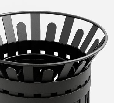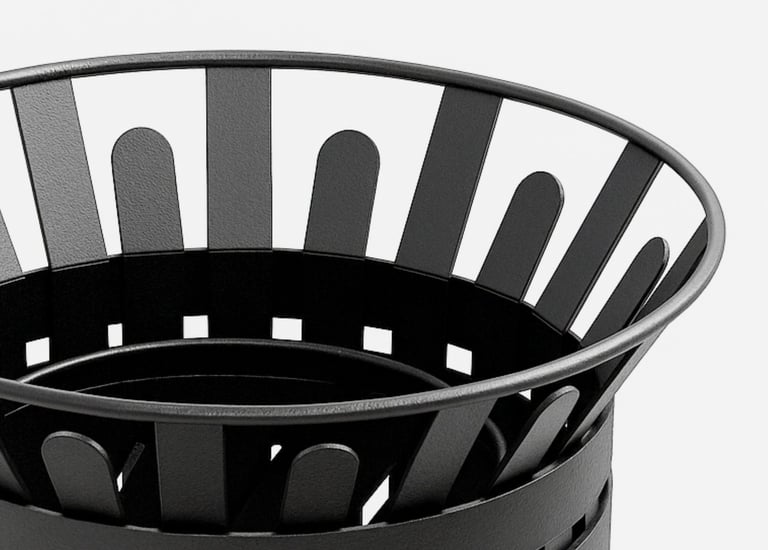 Diseñamos cestos de residuos urbanos, robustos y estéticos, preparados para el uso continuo en el espacio público.