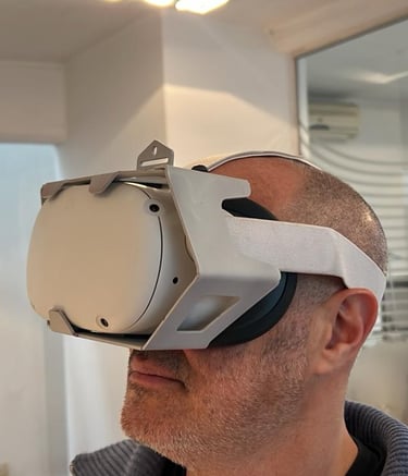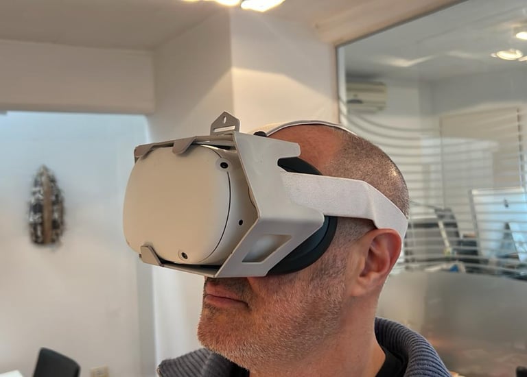 Un soporte para lentes de realidad virtual que permite su correcta exhibición y uso en locales especializados.